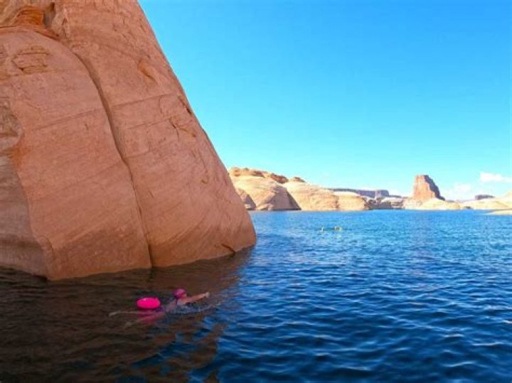 The most populated swim area in the downlake region is Lone Rock Beach across the Utah line. Visitors may drive right to the beach. Coming in at No. 2 is the beach in Wahweap Bay just south of the Stateline launch ramp.