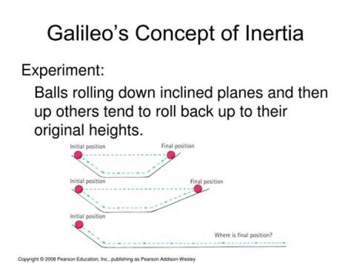 Galileo refined the concept of inertia. ... The theory of inertia says that an objects inertia will maintain its state of motion. So the ball should roll on forever. The ball only stops rolling because an external force (friction) causes the ball to stop.