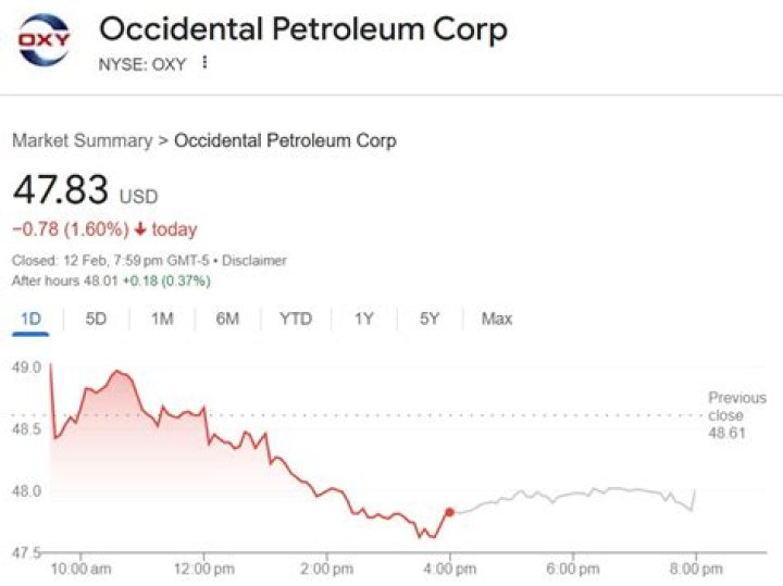 Occidental Petroleum Corp. engages in the exploration and production of oil and natural gas. It operates through the following segments: Oil and Gas, Chemical, and Midstream and Marketing. The Oil and Gas segment explores for, develops and produces oil and condensate, natural gas liquids and natural gas.