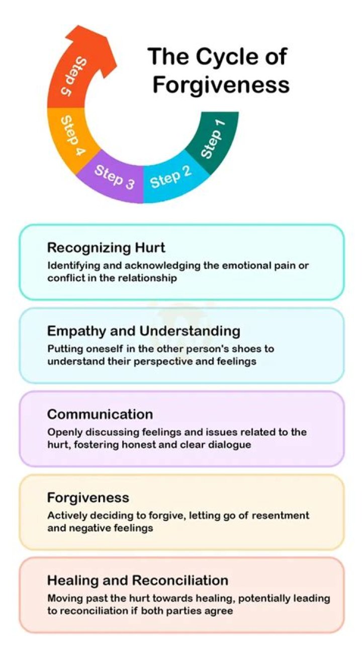 Forgiveness can even lead to feelings of understanding, empathy and compassion for the one who hurt you. Forgiveness doesn't mean forgetting or excusing the harm done to you or making up with the person who caused the harm. Forgiveness brings a kind of peace that helps you go on with life.