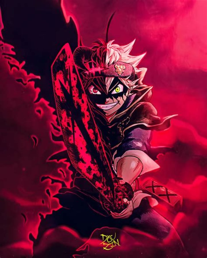 Asta's demon form is a sight to behold: Red-eyed, half black hair, horn sprouting from one side of his head, two elongated canines, and a black wing sprouting from his back all combine to create the perfect demonic look. He possesses a five-leafed grimoire, which is said to harbor a demon.