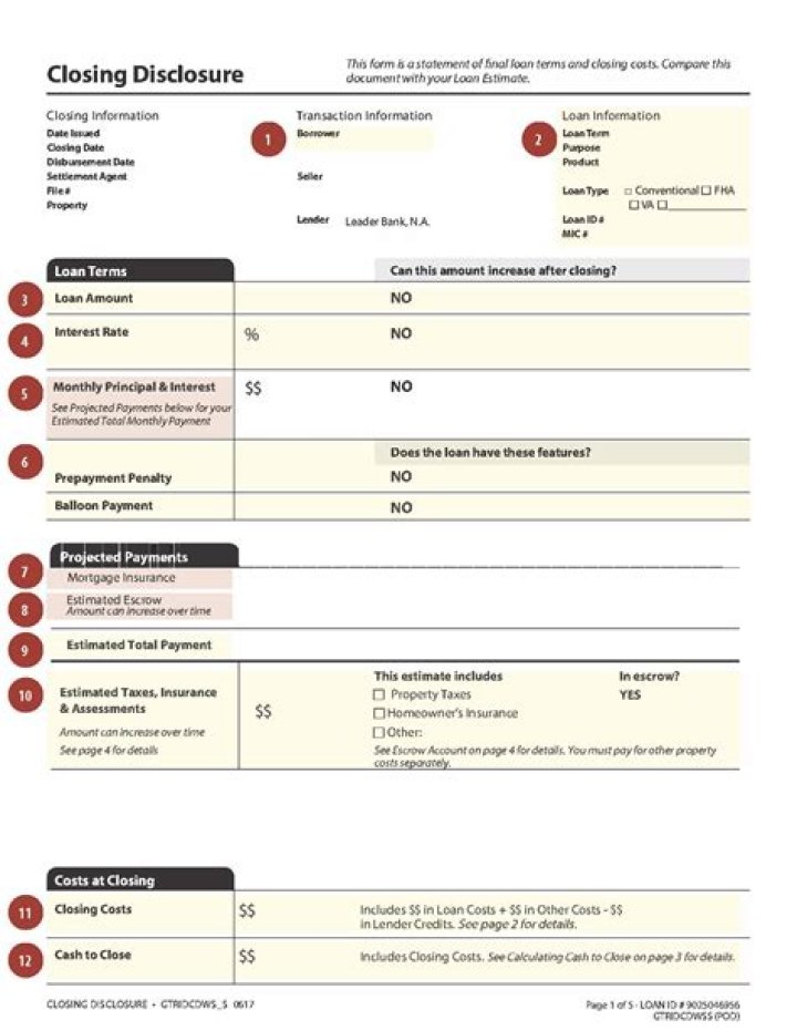 The Closing Disclosure is a final accounting of your loan's interest rate and fees, mortgage closing costs, your monthly mortgage payment and the grand total of all payments and finance charges. The form is issued at least three days before you sign the mortgage documents.