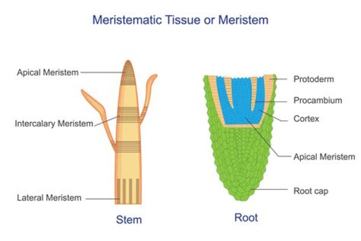 Primary growth is controlled by root apical meristems or shoot apical meristems, while secondary growth is controlled by the two lateral meristems, called the vascular cambium and the cork cambium.