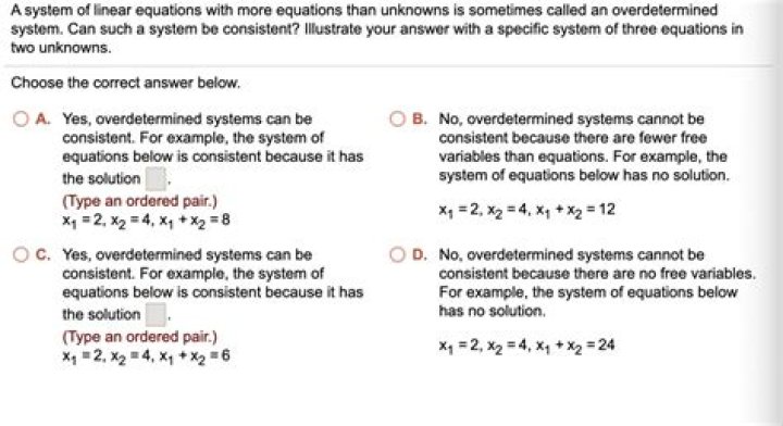 Overdetermined System A system is overdetermined if there are equations than there are variables. Note: An overdetermined system can have a unique solution, no solution or infinitely many solutions.