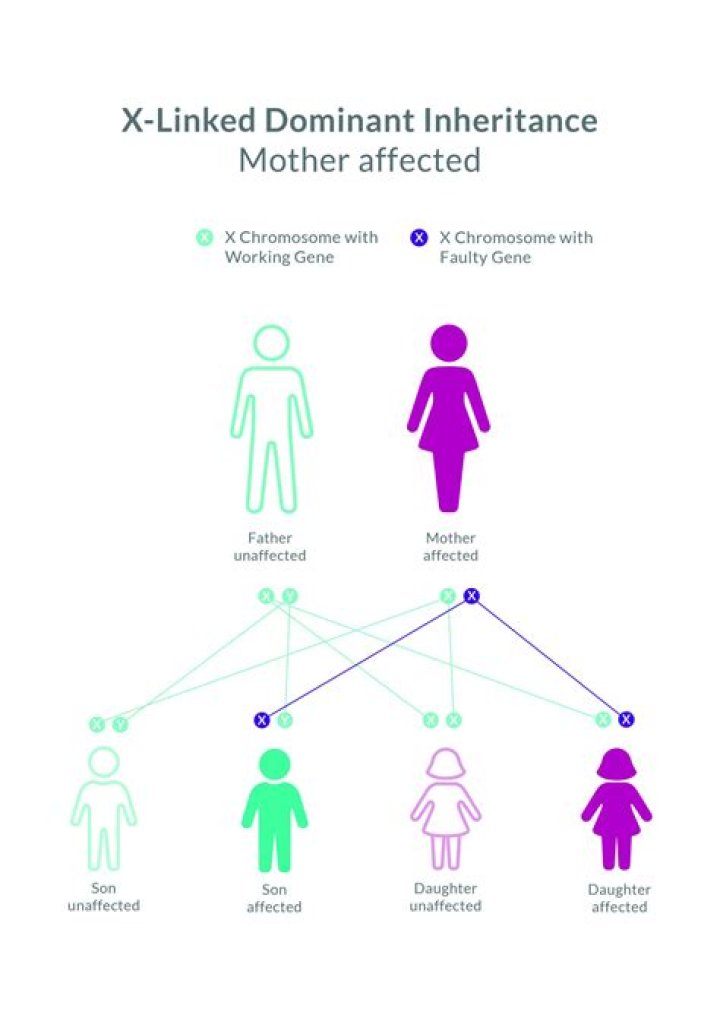 Like X-linked dominant diseases, Y chromosome-linked diseases are also extremely rare. Because only males have a Y chromosome and they always receive their Y chromosome from their father, Y-linked single-gene diseases are always passed on from affected fathers to their sons.