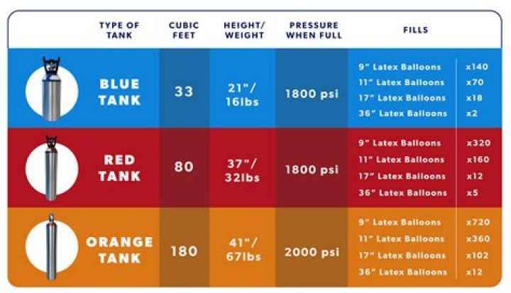 Latex Balloons: Tank will fill approximately (30) - 9 inch latex balloons or (16)- 11 inch latex balloons. The float time for each latex balloon is approximately 5-7 hours.