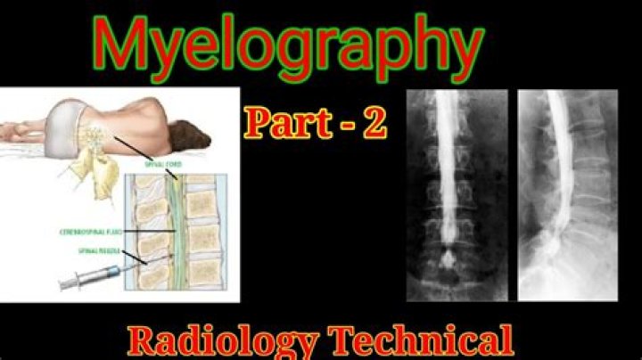 Myelography involves radiographs and/or CT of the spine following opacification of the subarachnoid space by intrathecal injection of iodinated contrast, most commonly injected at the lumbar level.