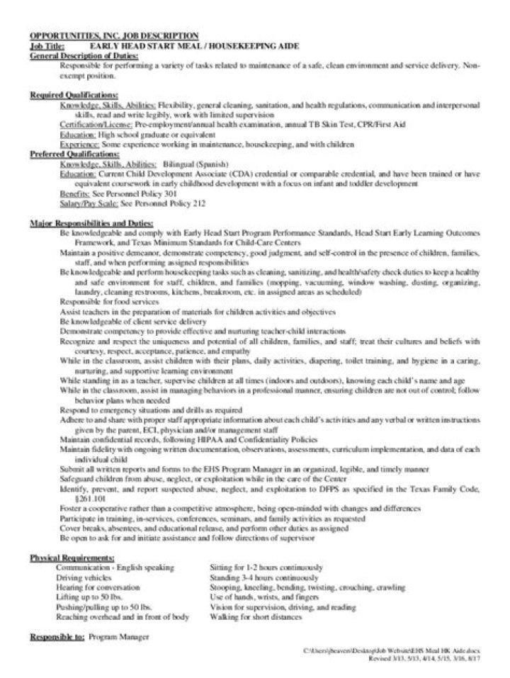 1. Cleans rugs, carpets and upholstered furniture using a vacuum cleaner, broom and carpet shampoo machine. 2. Cleans rooms, hallways and restrooms.