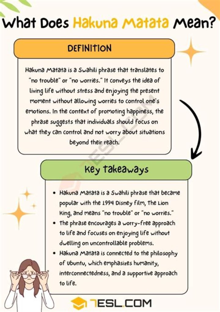 Is Hakuna Matata philosophy? Yes, we can consider Hakuna Matata a philosophy because the combination of two words is full of meaning and lessons. Additionally, Hakuna Matata shows how to live life freely and carefree.