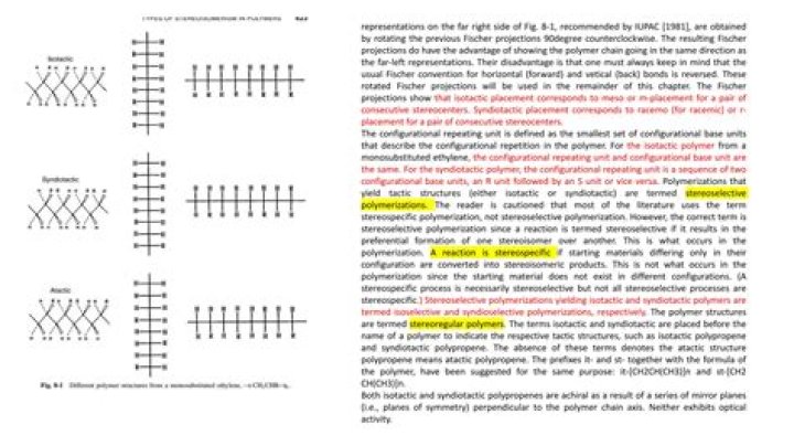 (also stereospecific polymer), any one of the polymers whose linear molecules consists of monomeric units having either identical spatial configurations or configurations that, while not identical, alternate in regular fashion.