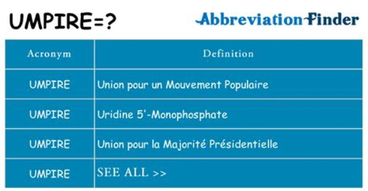 A person chosen to render a decision in a dispute; judge; arbiter. To act as umpire in or of. To act as umpire. (tennis) The official who presides over a tennis game sat on a high chair.