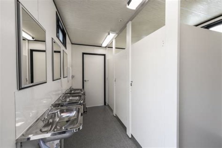 Temporary or semi-permanent toilet and ablution facilities are connected to a sewer system or conservancy tank. Toilets, showers, change rooms can all be configured. The range includes everything from single toilets to fully equipped bathrooms and showers for sanitation.