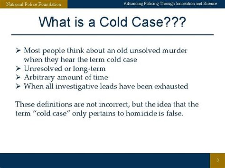 The definition of a cold case varies from agency to agency. The National Institute of Justice currently defines a cold case as any case whose probative investigative leads have been exhausted. In essence, this means a case that is only a few months old may be defined as being "cold."