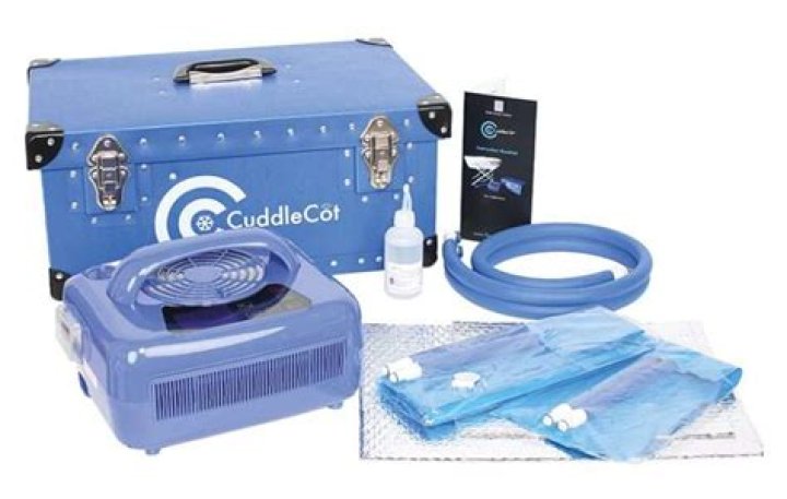 A cuddle cot is a cooling mattress that stop the baby's body deteriorating, and can be placed in a cot or even a pram. It allows parents to stay with them for days or even weeks before their funeral, hugging them, dressing them and taking them out for walks.