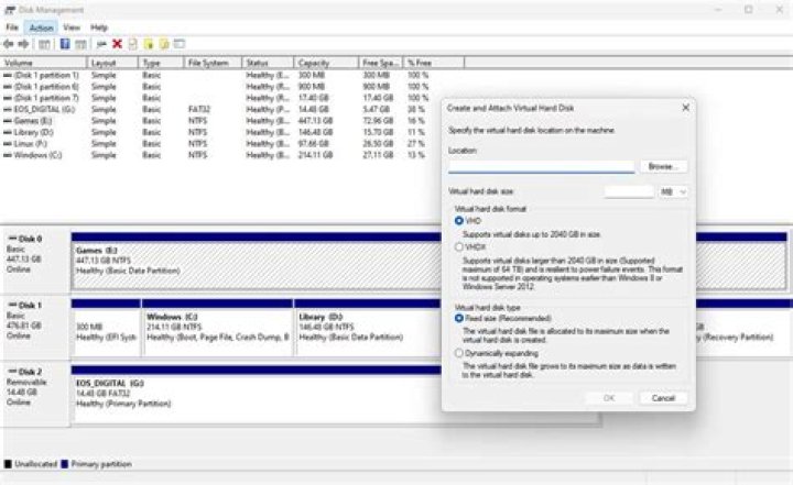 4. Click on the Browse button to specify the desired VHD(X) file location.