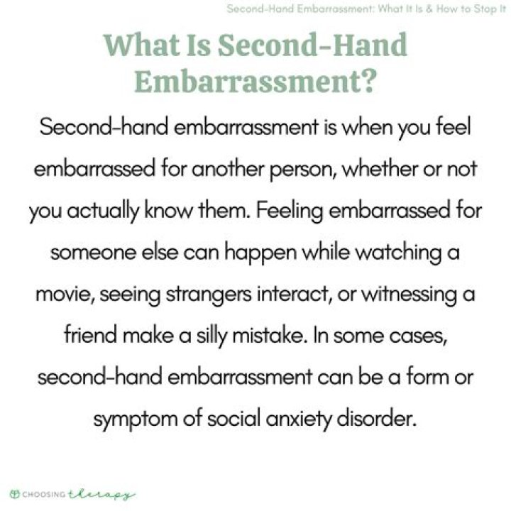 Your face turns red, you can't stop staring, and your palms start to sweat. These are the symptoms of second-hand embarrassment. For some, these moments are so uncomfortable as to merit a diagnosis of social anxiety disorder.