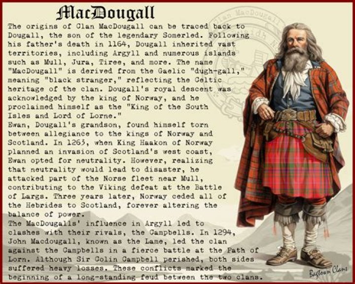 In the 13th century the Clan MacDougall whose chiefs were the original Lords of Argyll and later Lords of Lorne was the most powerful clan in the Western Highlands.