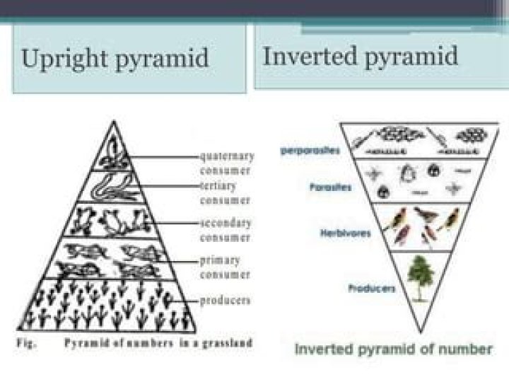 Pyramids are referred to as upright or inverted based on the number, biomass or any other factor that show gradation from producer to consumer level. In an upright pyramid, producer occupies a broader base while successive trophic levels decrease in width or size due a decrease in the fact of under consideration.