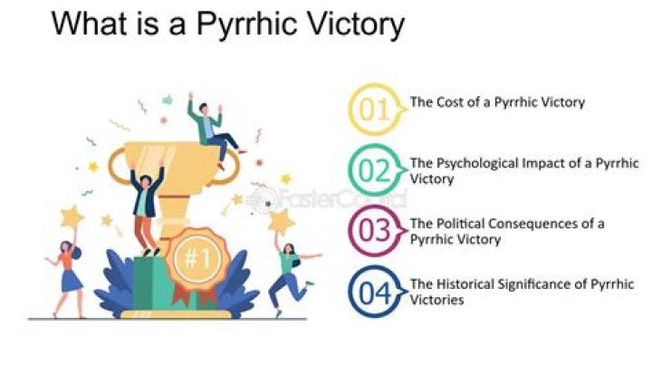 A Pyrrhic victory takes a heavy toll that negates any true sense of achievement or damages long-term progress. The phrase originates from a quote from Pyrrhus of Epirus, whose triumph against the Romans in the Battle of Asculum in 279 BC destroyed much of his forces, forcing the end of his campaign.