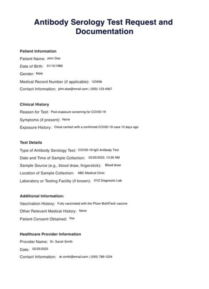Antibody and diagnostic tests are available by prescription from a health care provider and may be available at local health care facilities and testing centers. Contact your health care provider or your local or state health department for more information.