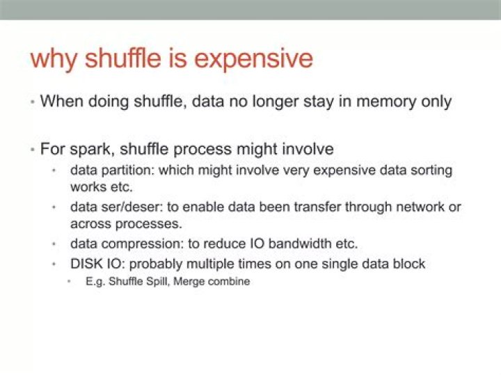 The Spark SQL shuffle is a mechanism for redistributing or re-partitioning data so that the data grouped differently across partitions, based on your data size you may need to reduce or increase the number of partitions of RDD/DataFrame using spark.
